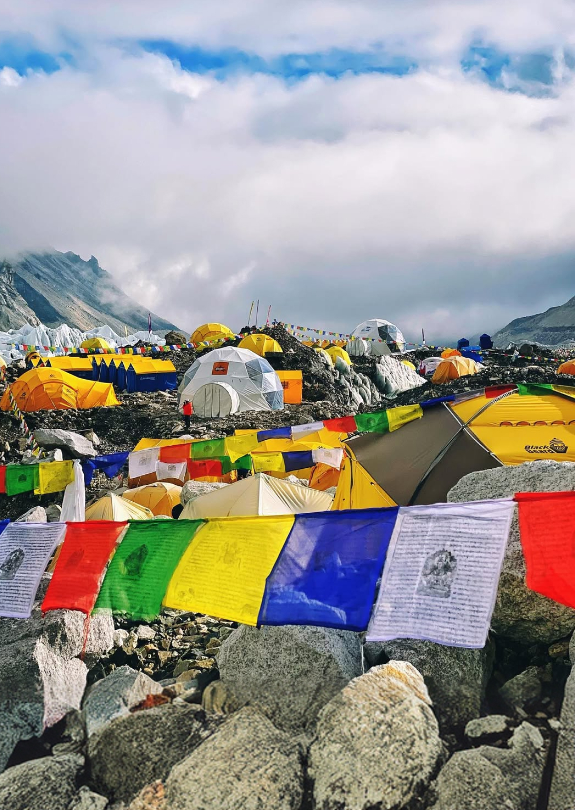 Самый холодный участок маршрута. На высоте базового лагеря Эвереста в мае снег на обочинах — норма. Резкие перепады в течение дня: утром мороз, в полдень солнечно и терпимо, вечером снова холод и ветер. Термобельё, флис, ветрозащита — обязательны.