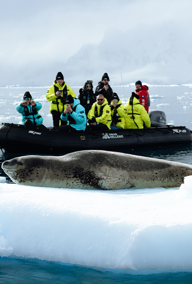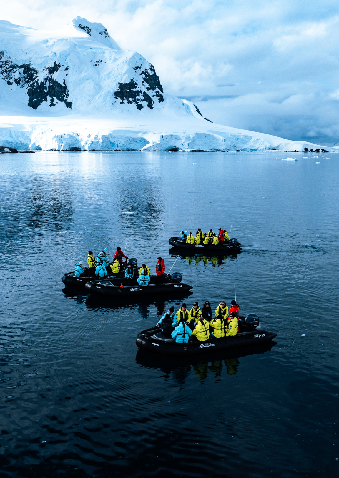 Дважды в день — высадка на Антарктиду и морское сафари на лодках Зодиак, знакомство с фауной и ледниками.